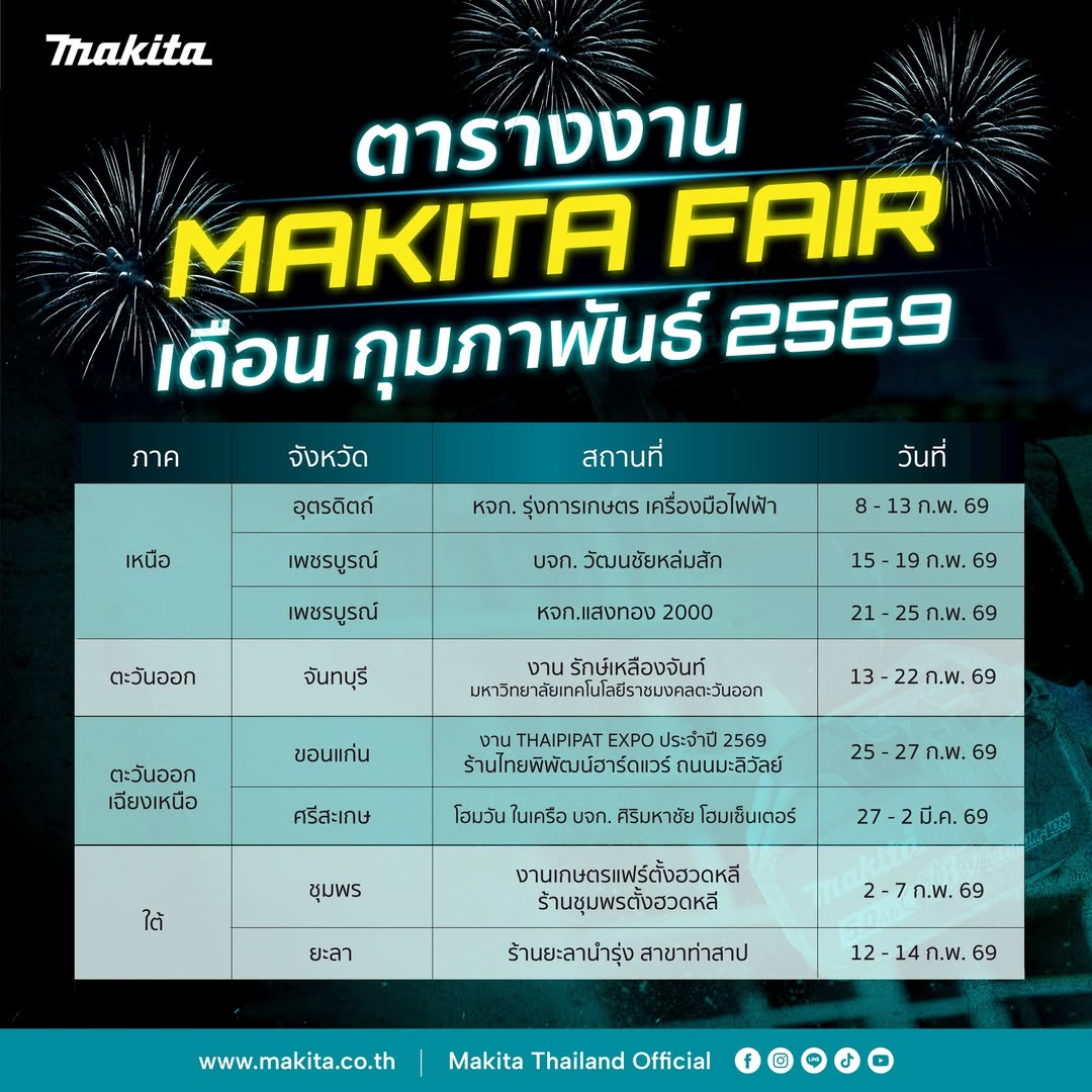 ข่าวสารที่น่าสนใจ และ promotion ที่คุณไม่ควรพลาดจากทาง makita แล้วคุณจะได้รู้ว่า Makita ไม่ใช่แค่เครื่องมือแต่คือส่วนหนึ่งของครอบครัวช่างและตัวคุณ