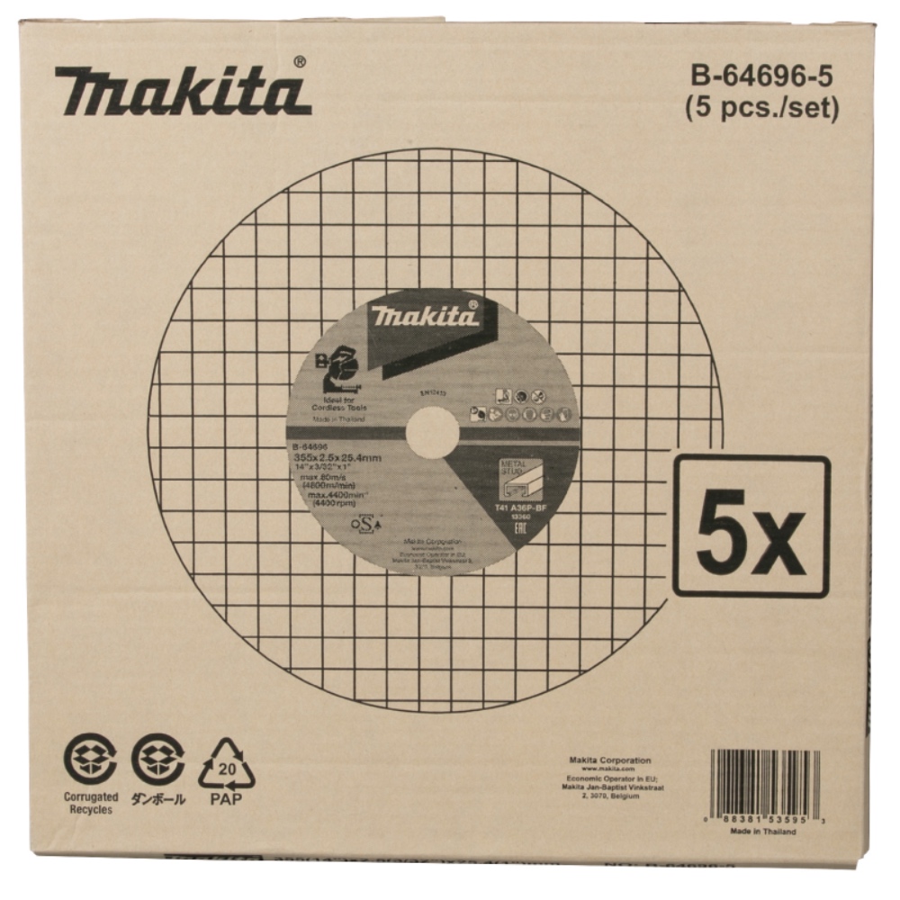 • Suitable accessory to cut metal stud with new cordless portable cut-off • special additive prevents releasing abrasive grains. It brings 3.6 times longer life. • For Metal framer • The Makita metal cut-off wheel is engineered for longer life